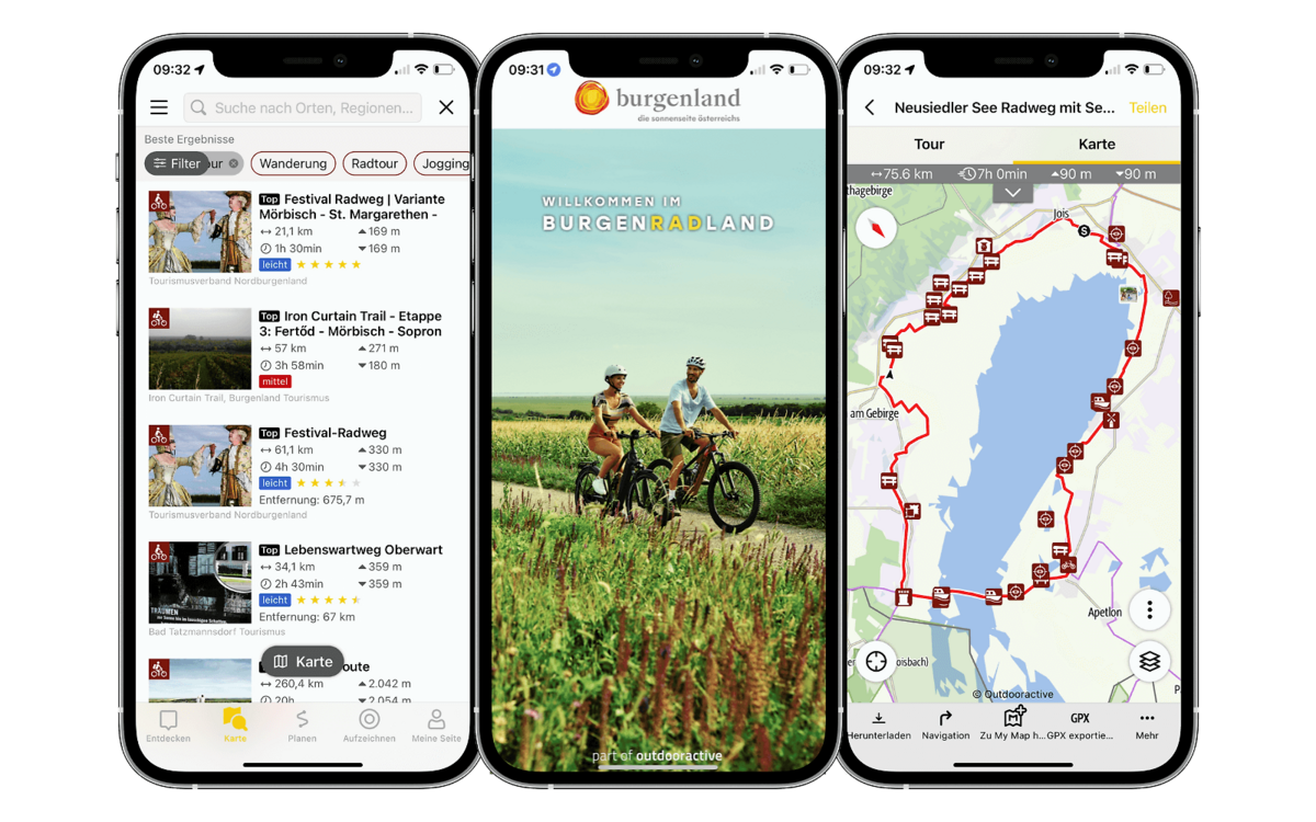 Diese App bietet Ihnen nicht nur eine Rad-, Wander- und Reitwegekarte der gesamten Region (zoombar bis 1:25.000) sondern auch Dutzende Tourenvorschläge für Sie und Ihre Familie. Sie hilft Ihnen dabei, Ihren Ausflug ins Burgenland oder Ihre Ferientage hier zu planen und zu genießen – interaktiv und bequem, von zu Hause aus oder direkt vor Ort.